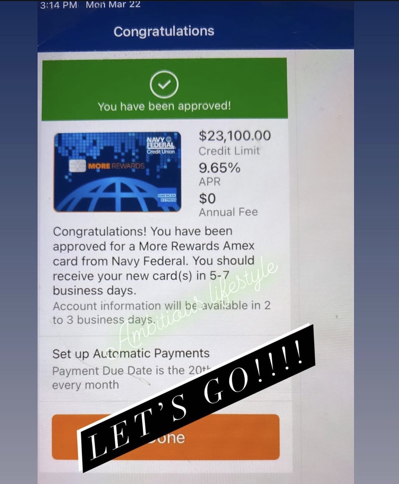 Stacey was approved for her first high limit credit card, after being with Ambitious Lifestyle for 60 days!
